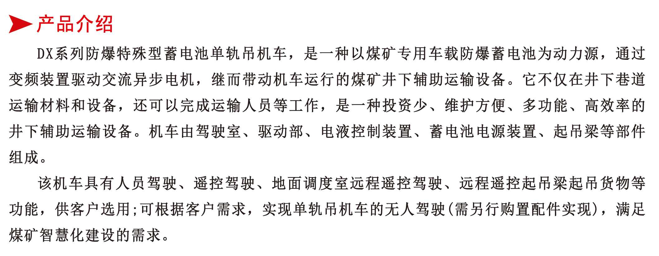 防爆鋰電池單軌吊機(jī)車